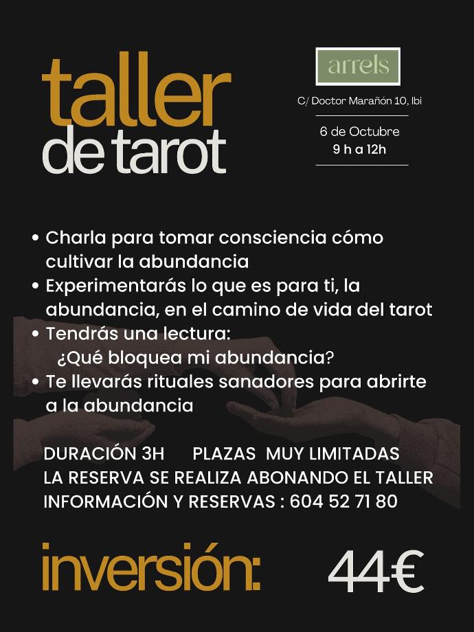 Únete a este taller de medio día organizado por @itzaltarot en nuestro centro de Ibi para decodificar y sanar tus bloqueos con la abundancia a través del tarot.